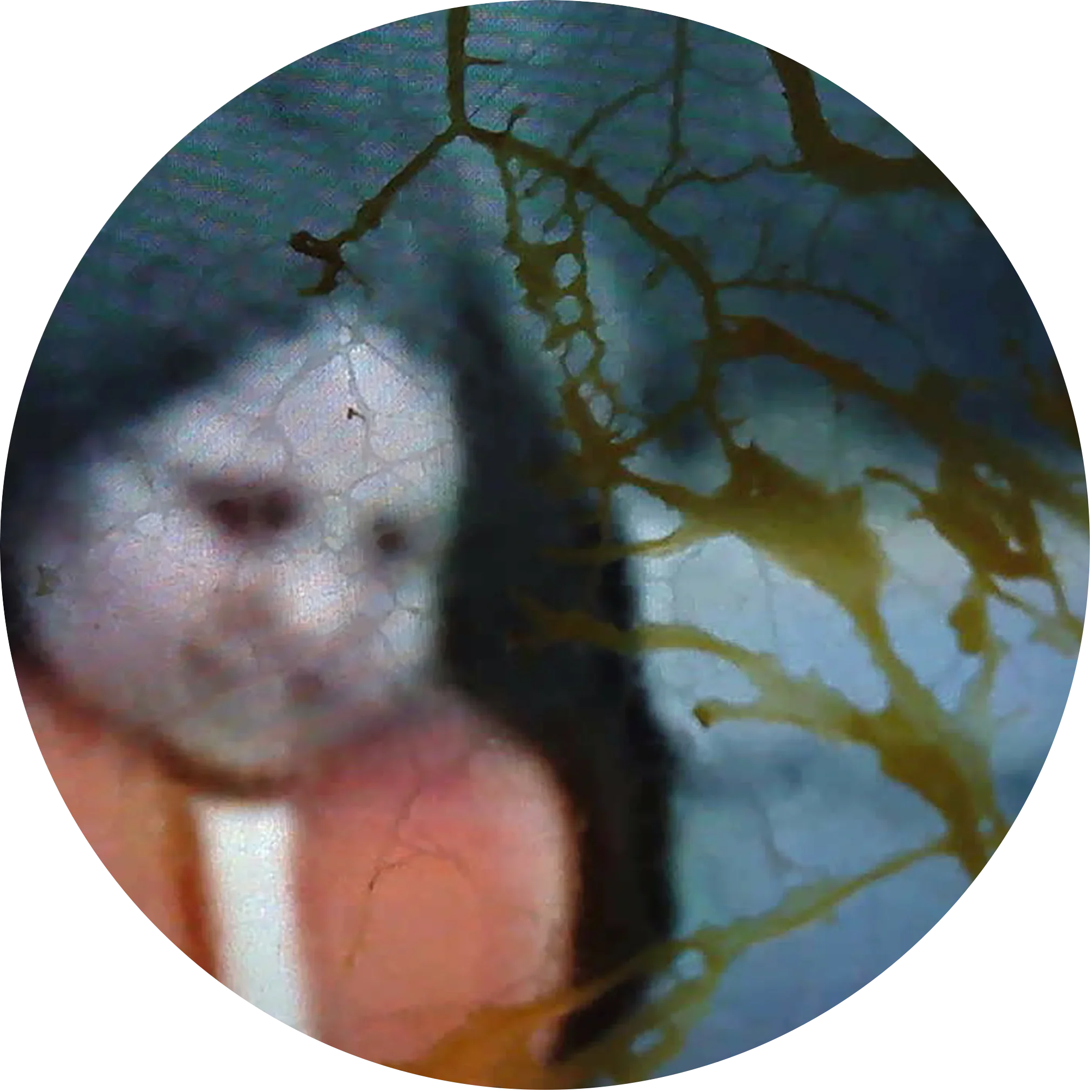 En esta obra superpongo mis propios videos familiares sobre un cultivo de moho para cuestionar qué significa la memoria para cada organismo.