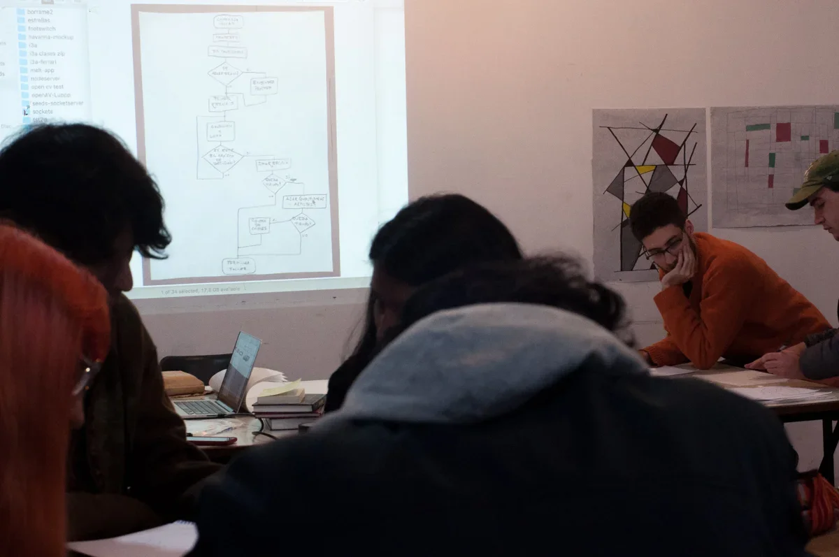 Partiendo de las bases planteadas por el artista Sol LeWitt, este taller tiene como motivo desdibujar las fronteras que la programación impone a quienes la desconocen, creando un espacio que permita el juego y la experimentación. El código creativo, una base de matemática y una profunda reflexión sobre la práctica artistica son los pilares para la realización de obras en este espacio.